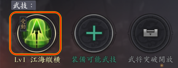 武将の詳細画面を開き、レベルを上げたい武技のアイコンをタップします。