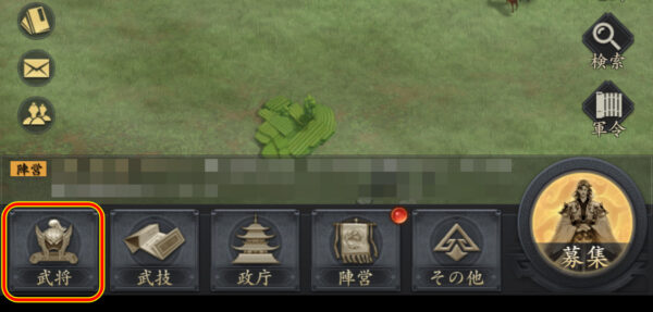 大地図画面下部のメニューから「武将」を選択します。